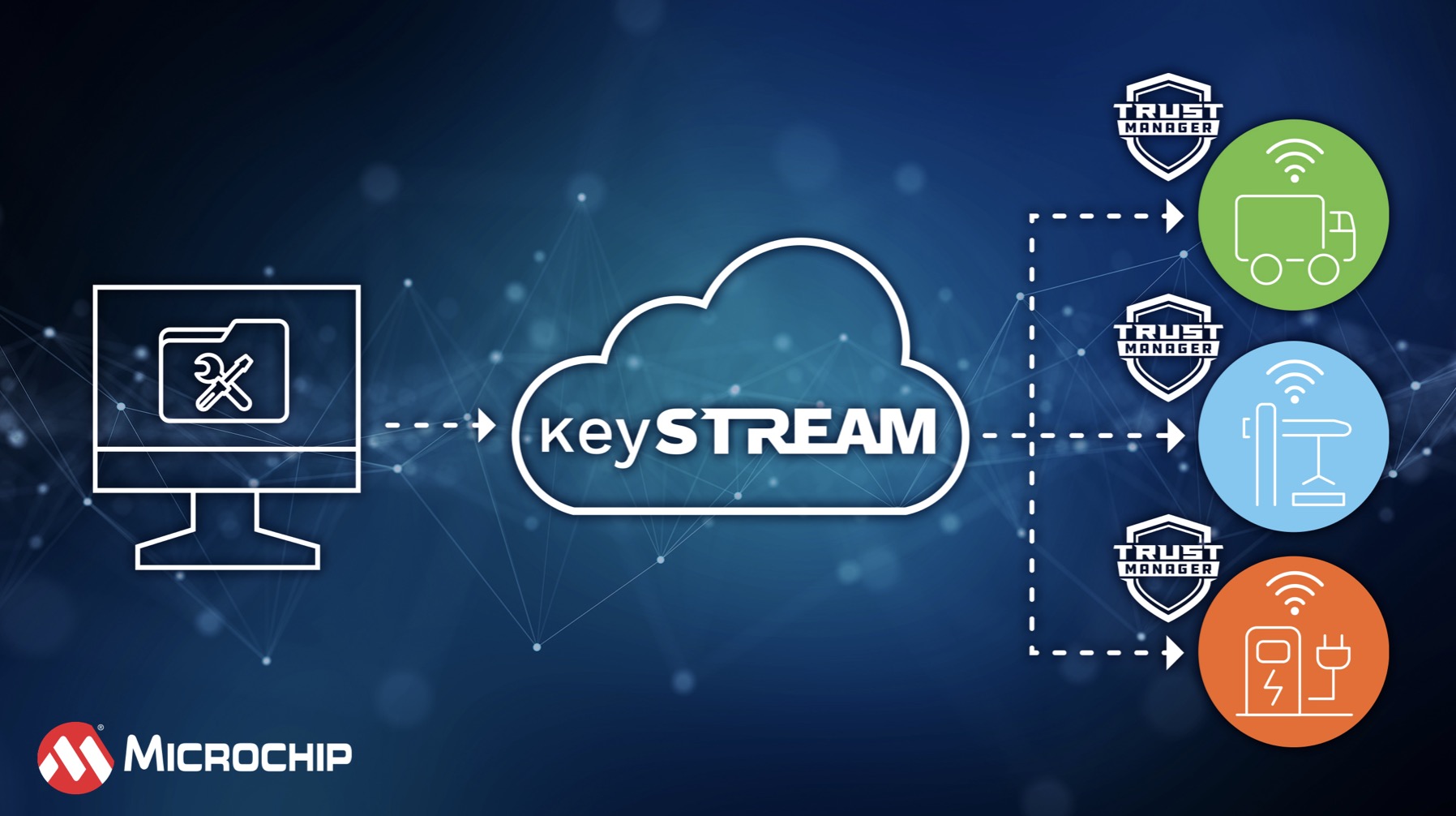 TrustMANAGER sử dụng phần tử bảo mật ECC608 cùng với dịch vụ keySTREAM từ Kudelski IoT theo mô hình phần mềm dưới dạng dịch vụ (SaaS). Với sự tích hợp này, hệ thống có thể bảo vệ và quản lý các thông tin mật một cách an toàn, đồng thời hỗ trợ cập nhật firmware theo thời gian thực để khắc phục lỗ hổng từ xa, tiết kiệm chi phí và đảm bảo tuân thủ các yêu cầu pháp lý ngày càng nghiêm ngặt.